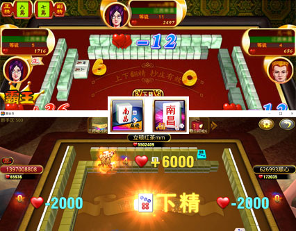 “南昌麻将”游戏是主要在江西省南昌及其周边等地区流行的麻将,在南昌称南昌麻将、在其他地区又称“德国麻将”使用无花牌的136张麻将,游戏人数为4人,分别为东、南、西、北,门风东者为庄家,其余均为旁家。 每人手里抓13张牌,通过吃牌、碰牌、杠牌等方式,使手牌按照相关规定的牌型条件和牌。南昌麻将最大的特色是三张不重复的同类的字牌可以组成一副顺子,再加上比全不靠更容易和的“十三烂”的新牌型的引入,使胡牌更加容易;又由于使用了较多的混牌──“正精”和“副精”,使得天胡、地胡的出现频度大幅增加。